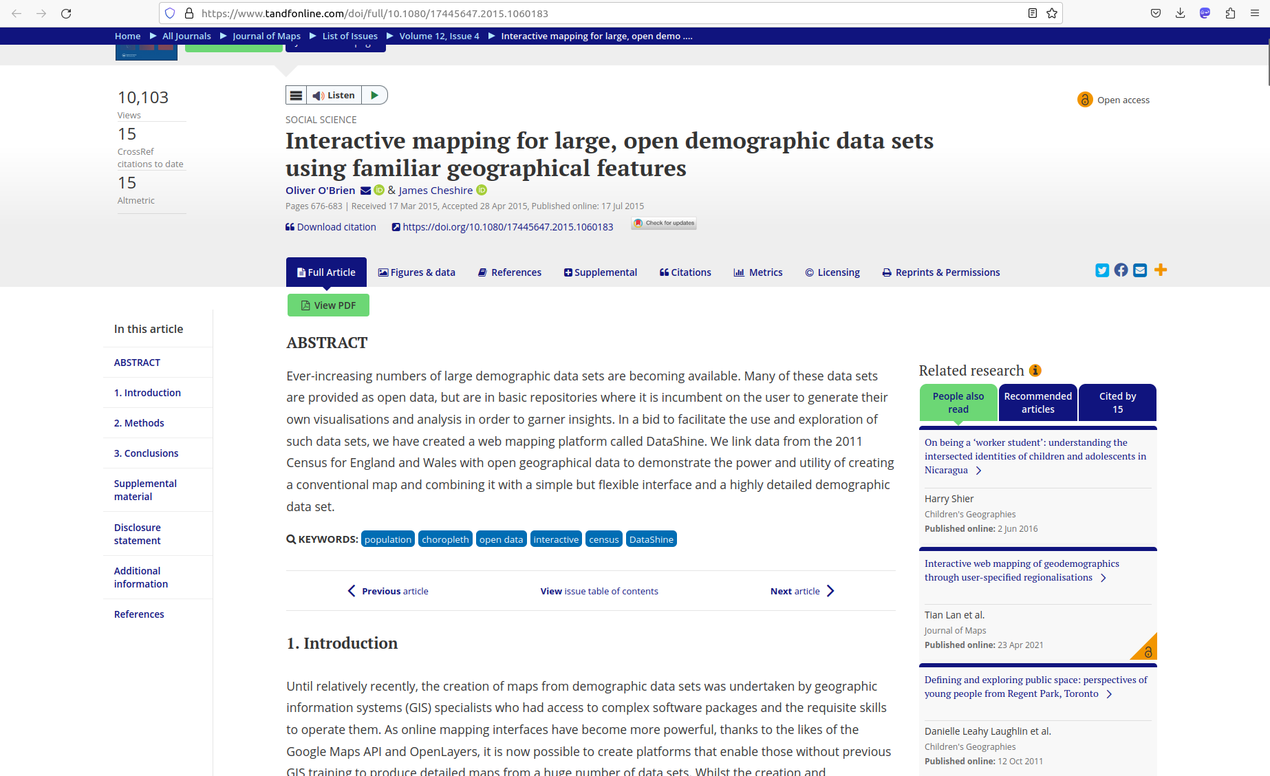 Oliver O’Brien a proposé une approche similaire en 2015 avec data-shine (Uk)